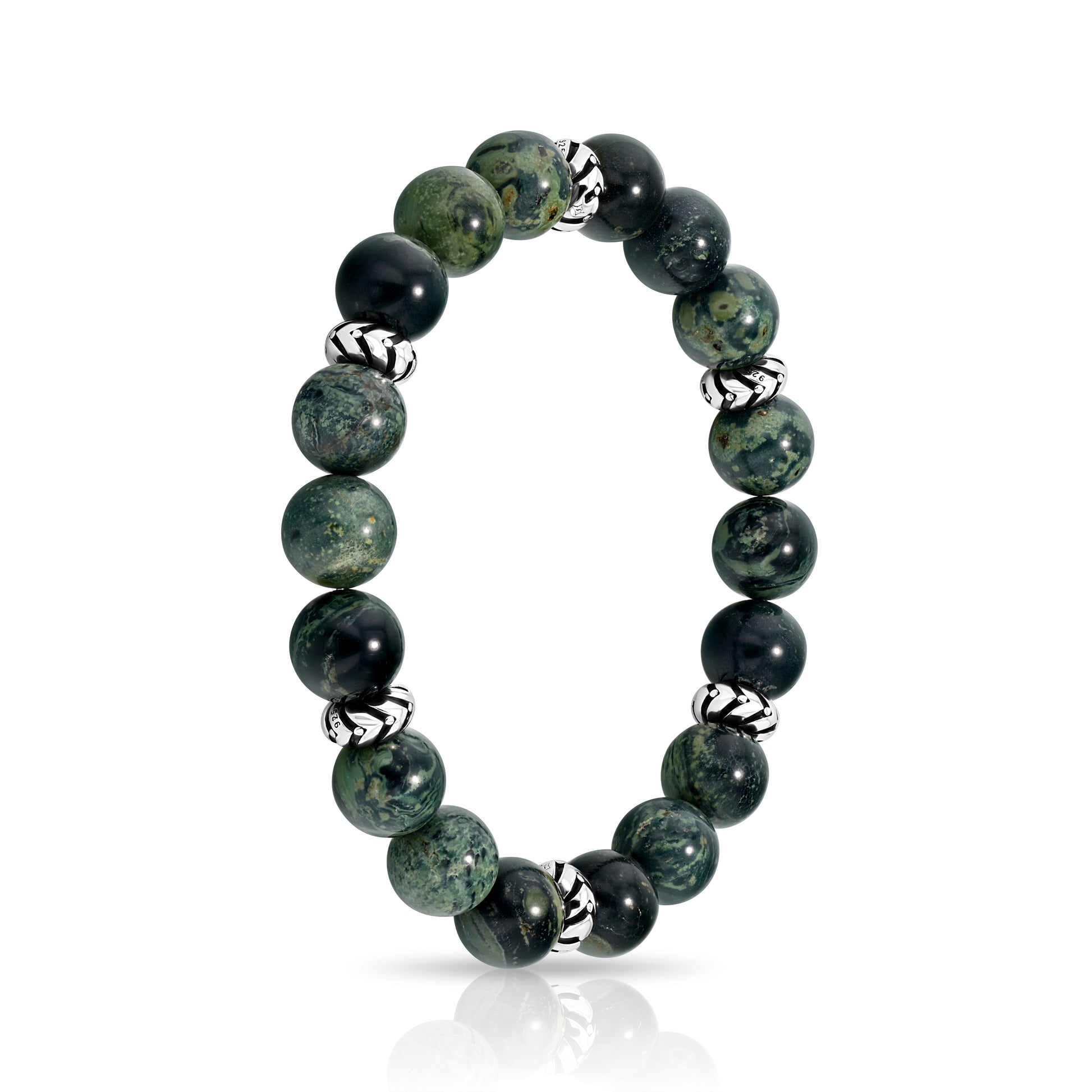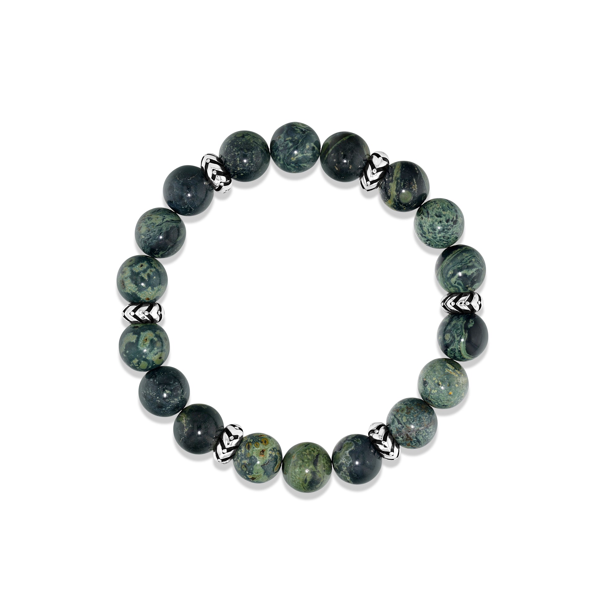 Expertly-crafted with genuine jasper beads and silver accents, this bracelet exudes timeless sophistication. The jasper beads offer natural grounding and stability, while the silver accents add a touch of elegance. Perfect for any occasion, this bracelet is a must-have for any jewelry collection.