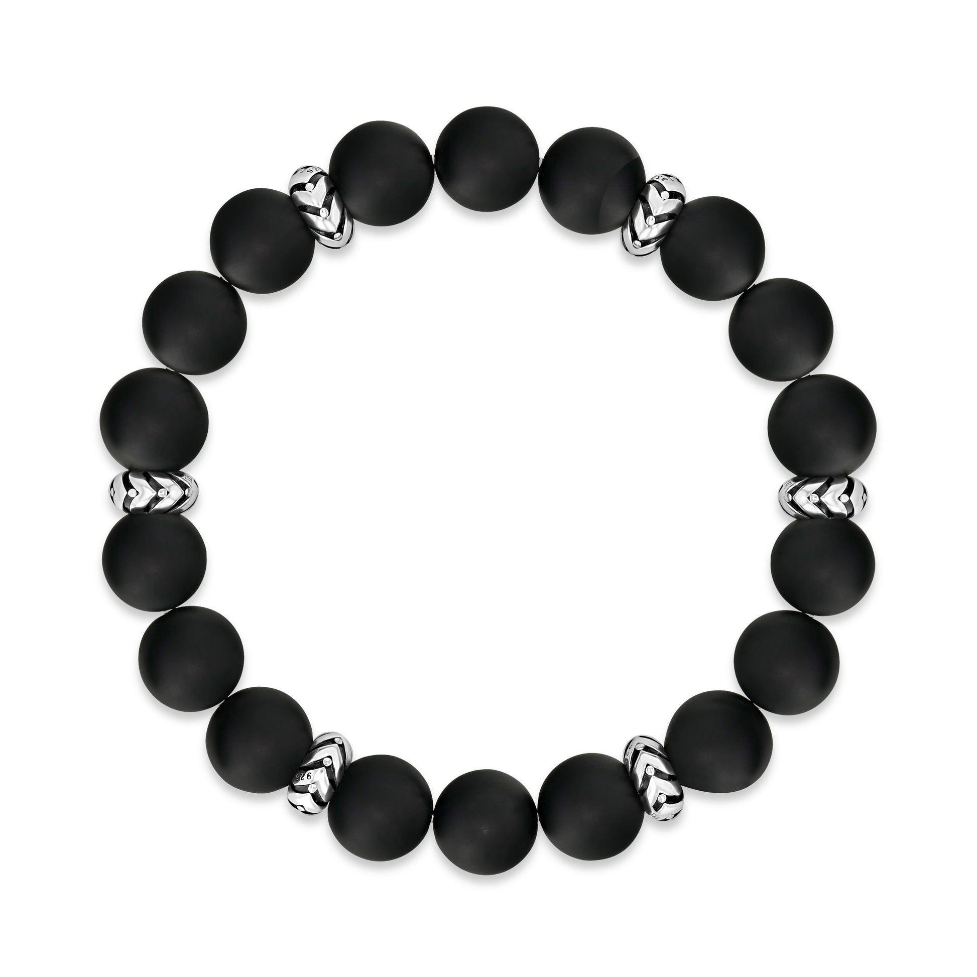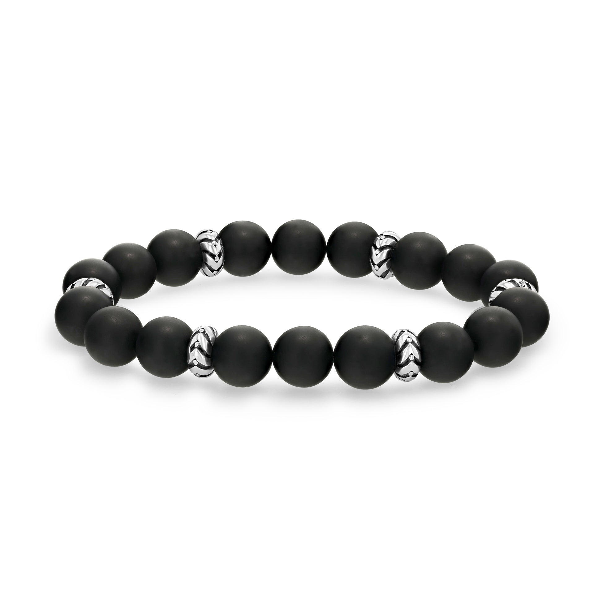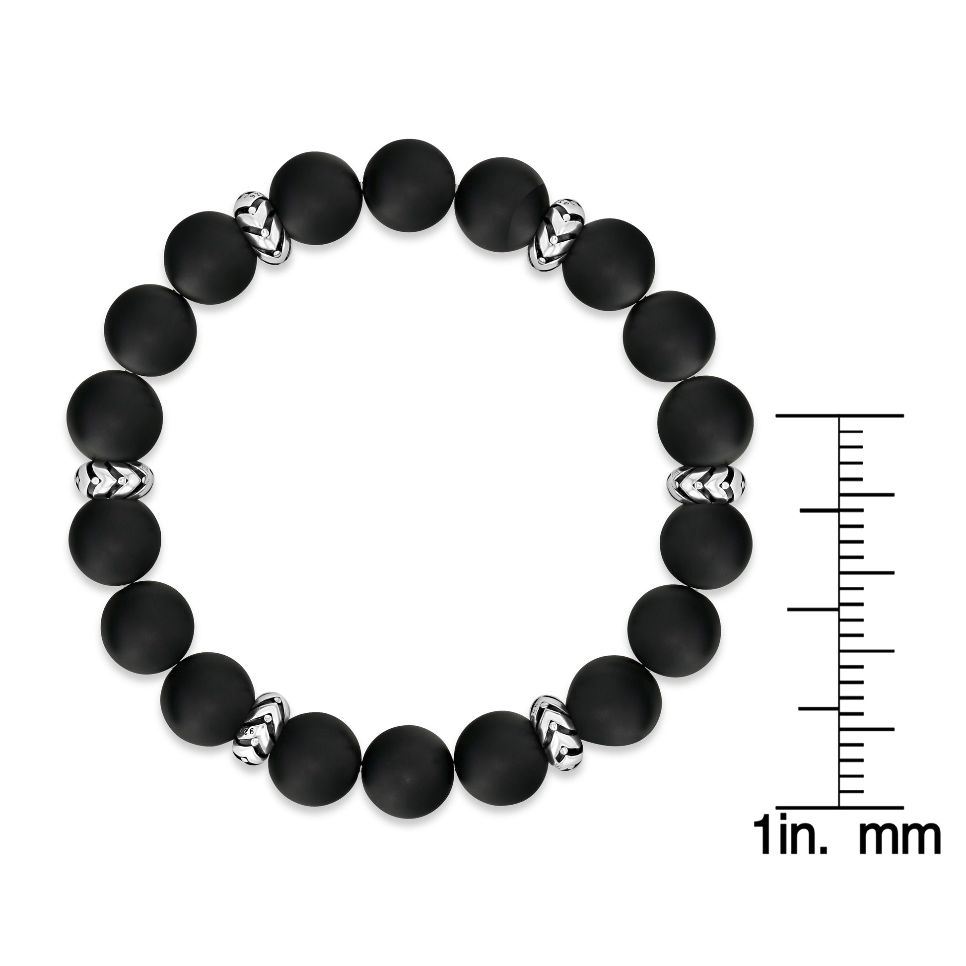 Matte Black Agate Beaded Bracelet with Silver Accents