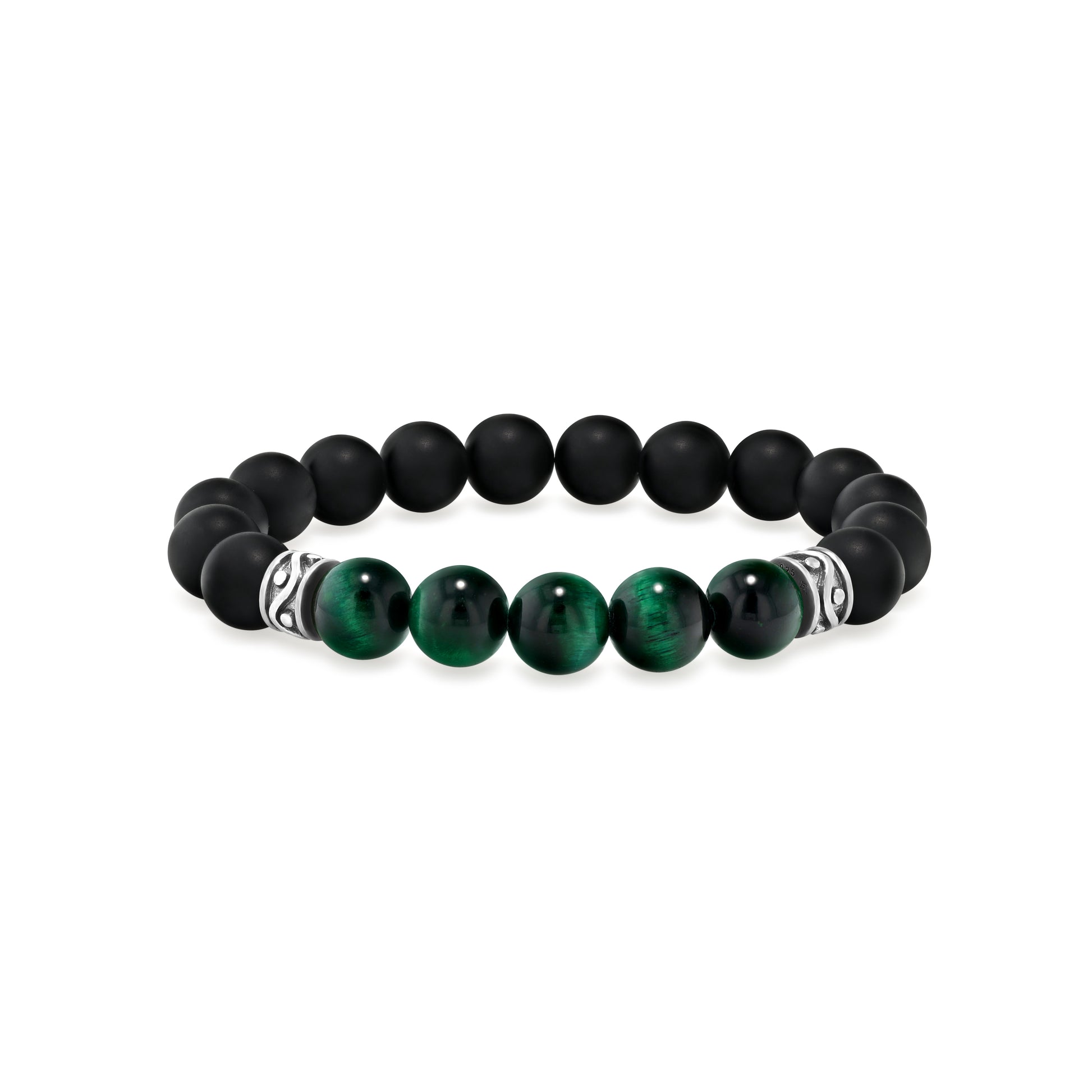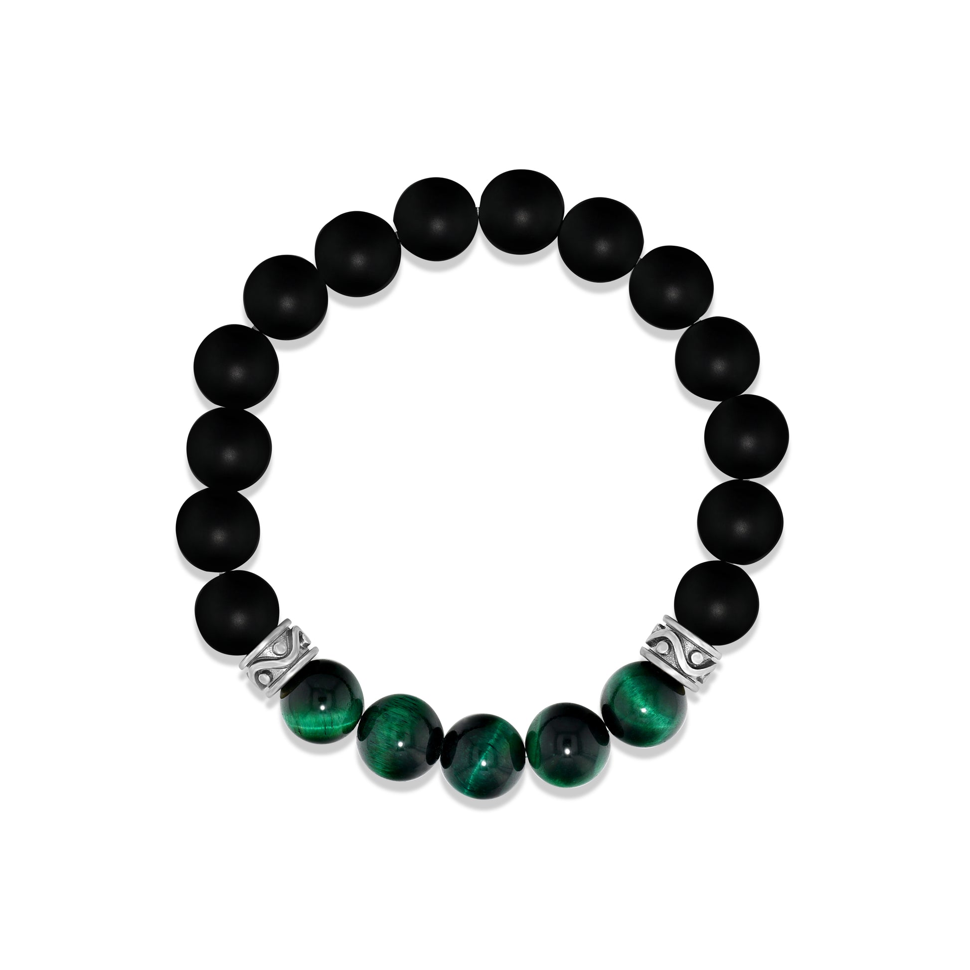 Matte Black Agate & Green Tiger Eye Beaded Bracelet