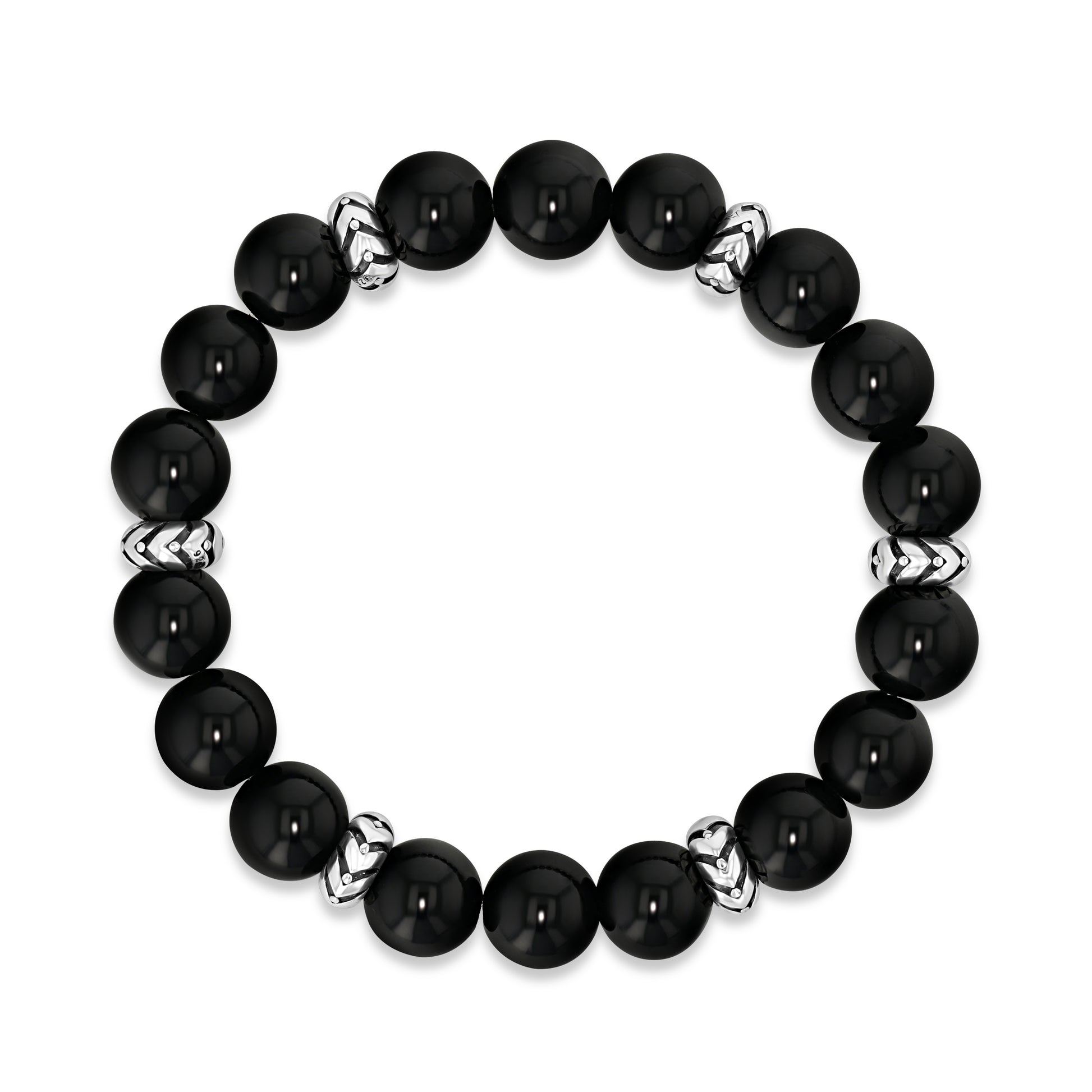 Polished Black Agate Beaded Bracelet with Silver Accents